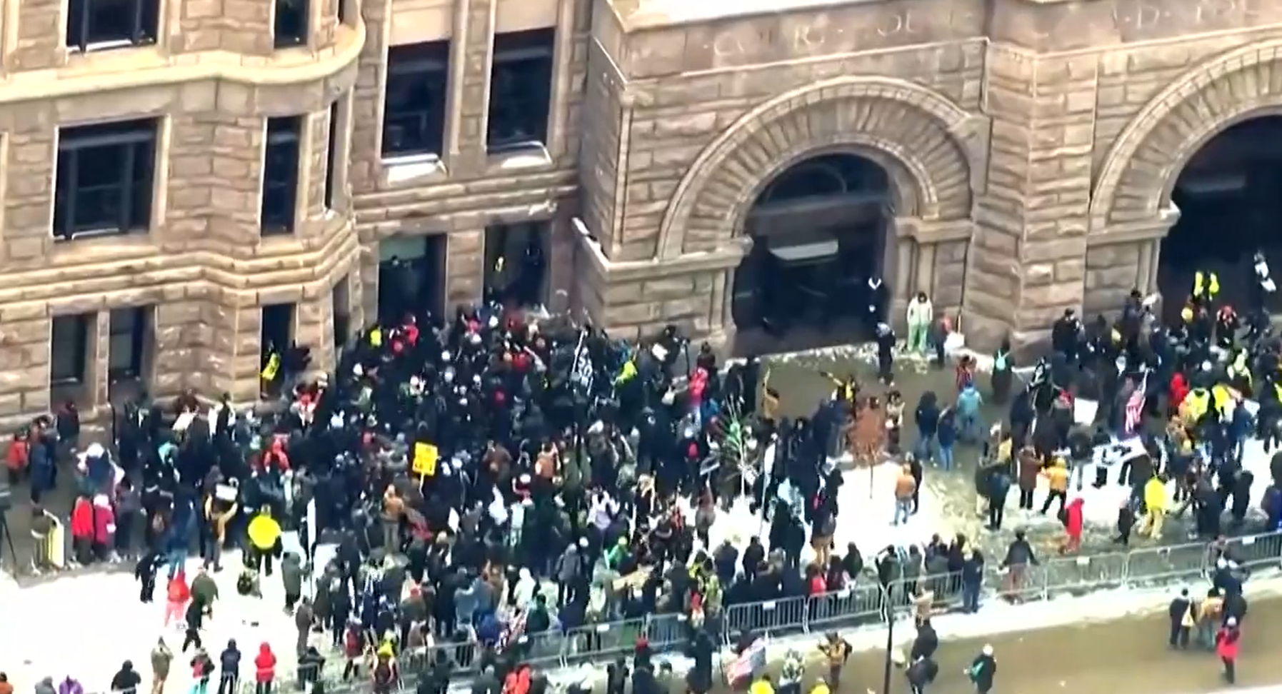 明尼阿波利斯的抗议民众在一栋联邦建筑外进行示威,部分民众与执法人员发生冲突。随后,执法人员疑似使用催泪瓦斯驱散抗议民众。
